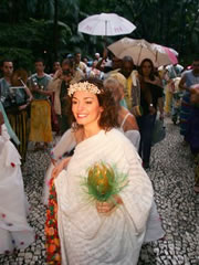 Ok, você não precisa usar um vestido de PET (a partir de fios de garrafas plásticas) como Sabrina, mas a opção pelo vestido de noiva alugado (bem como, trajes dos noivos, padrinhos etc.) já ajuda. Como assessórios, você poderá utilizar – e solicitar aos convidados que utilizem – as chamadas “biojóias”, bijuterias artesanais, produzidas com sementes, fibras e outros materiais naturais.